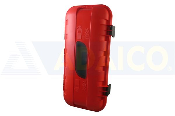 CAJON EXTINTOR 6 KG. DE 287 DE ANCHO*600 DE ALTO*160 DE FONDO, DE POLIETILENO ALTA DENSIDAD Y PUERTA DE COLOR ROJO CON VENTANA