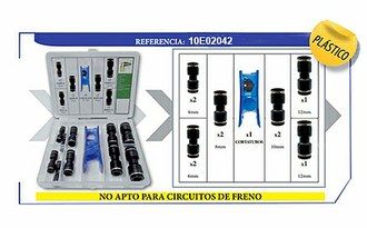 ESTUCHE KIT DE RACORES RAPIDOS DE AIRE DE PLASTICO RECTOS 4/6/8/10/12/15 MM., CODOS 6/8/10/12 MM., TES 6/8/10/12 MM., REDUCIONES 8>6, 10>8, 12>10 MM. Y CORTATUBOS DE 44 PIEZAS PARA TUBO DE TECALAN 4, 6, 8, 10, 12, 15 MM. (NO APTO PARA CIRCUITOS DE FRENADO