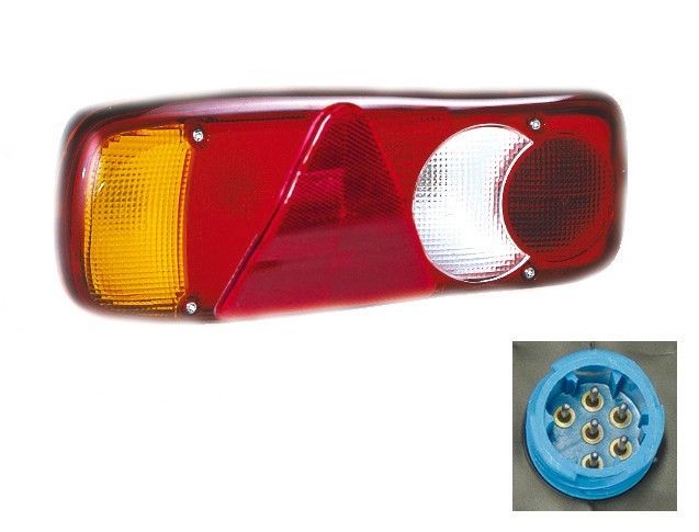 PILOTO VIGNAL REMOLQUE TRASERO LC5T DE 5 FUNCIONES 350*130*83 MM. CON LUZ DE MARCHA ATRAS DE MEDIA LUNA DEL LADO DERECHO CON CONECTOR CENTRAL + 2 TOMAS AUXILIARES Y LUZ DE MATRICULA PARA REMOLQUES GRANALU, LAMBERET, LECIÑENA, SAMRO, TISVOL
